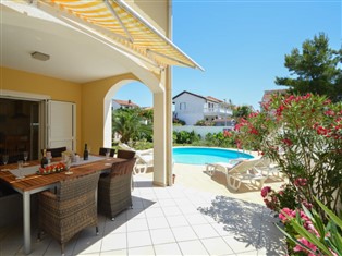 Tribunj 3 km von Vodice: Doppelhaus "Valdor", auf 2 Stockwerken. Im Weiler Sovlje, 1.5 km vom Zentrum von Tribunj, ruhige, sonnige Lage, 500 m vom Meer, 500 m vom Strand, in einer Sackgasse. Zur Alleinbenutzung: Grundstück (eingezäunt) mit Rasen, Schwimmbad rund (5 m Durchmesser, 110 cm tief, saisonale Verfügbarkeit: 01.Mai. - 15.Okt.). Aussendusche, Terrasse (12 m2), Gartenmöbel, Grill. Im Hause: Internetzugang, Waschmaschine. Parkplatz beim Haus auf dem Grundstück. Einkaufsgeschäft 1.5 km, Restaurant 150 m, Kieselstrand, Felsstrand, betonierter Strand 500 m. Der Besitzer akzeptiert keine Jugendgruppen. Die Nachbarschaft ist sehr lärmempfindlich. Ruhe und gutes Benehmen wird erwartet. Gepflasterter Strand mit Duschmöglichkeit in der Bucht Sovlje, 500 m vom Haus entfernt.