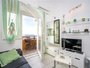 3-Zimmer-Wohnung 38 m² im 2. Stock. Wohn-/Esszimmer mit Sat-TV (Flachbildschirm), Klimaanlage. Ausgang zum Balkon. 1 Zimmer mit 1 franz. Bett (140 cm, Länge 200 cm). 1 Zimmer mit 1 x 2 Etagenbetten (90 cm, Länge 200 cm). Offene Küche (2 Glaskeramikherd Platten). Dusche/WC. Klimaanlage (extra). Keine Heizmöglichkeit. Balkon 2 m². Schöne Sicht auf das Meer. Zur Verfügung: Internet (Wireless LAN, gratis). Parkplatz (eingezäunt).