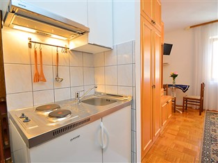 1-Zimmer-Wohnung 22 m² im 1. Stock. Studio mit 1 Doppelbett (2 x 90 cm, Länge 190 cm), Esstisch, Küchenblock und Sat-TV (Flachbildschirm). Dusche/WC. Keine Heizmöglichkeit. Zur Verfügung: Internet (Wireless LAN, gratis).