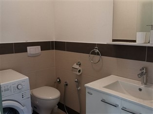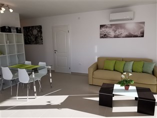 Ferienwohnung (In einem Wohngebiet oder im Zentrum (Dorf)) , 72 m² Wohnfläche, 2 Schlafzimmer, 1 Badezimmer, für 4 Personen. Parterre: (Küche (Wasserkocher, Kaffeemaschine, Mikrowelle, Spülmaschine, Kühl-/Gefrierkombination), Wohn/Esszimmer (TV, Esstisch (6 Personen), Sitzecke, Stereoanlage, Klimaanlage), Schlafzimmer (Doppelbett), Schlafzimmer (Doppelbett), Badezimmer (Dusche, Waschbecken, Toilette, Föhn), Toilette (Waschbecken, Toilette, Waschmaschine), Terrasse)