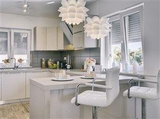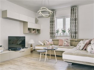 Ferienwohnung / Villa (In einem Wohngebiet oder im Zentrum (Stadt)) , 150 m² Wohnfläche, 3 Schlafzimmer, 2 Badezimmer, für 6 Personen. Parterre: (offene Küche (Bar (Esstheke), Kochherd (4 Kochplatten, Induktion), Kaffeemaschine, Backofen, Mikrowelle, Spülmaschine, Kühl-/Gefrierkombination), Wohn/Esszimmer (Doppelschlafcouch, TV (Flatscreen, Satellit), Esstisch (6 Personen), DVD-Spieler, CD-Spieler, Spielkonsole, Klimaanlage), Badezimmer (Badewanne mit Dusche, Waschbecken, Toilette))