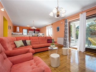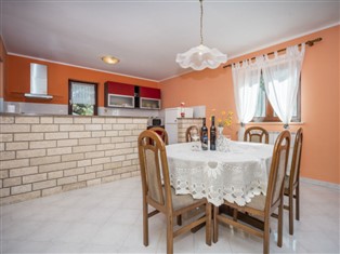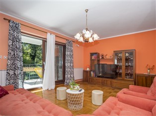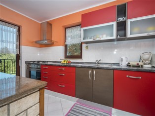 Einfamilienhaus "Iva". Im Weiler Vlašici, 1.5 km vom Zentrum von Kršan, 15 km vom Zentrum von Rabac, ruhige, sonnige Lage, 6 km vom Meer. Zur Alleinbenutzung: Grundstück 3 000 m2, Garten mit Rasen und Bäumen, Aufstellpool rund (5 m Durchmesser, 130 cm tief, 27.04.-28.09.). Volleyball, Laube (10 m2), Terrasse (12 m2), Gartenmöbel, Grill. Im Hause: Internetzugang, Tischfussball, Waschmaschine. Parkplatz (für 2 Autos) beim Haus auf dem Grundstück. Einkaufsgeschäft 2 km, Supermarkt 10 km, Restaurant 2 km, Kieselstrand 6 km, Strandbad 15 km. Wanderwege ab Haus 100 m, Radweg 150 m. Unteres Geschoss ist geschlossen und nicht bewohnt.