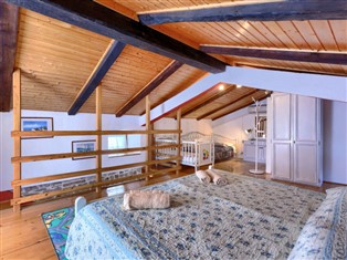 5-Zimmer-Haus 130 m² auf 2 Stockwerken. Wohnzimmer mit Sat-TV, Radio, CD und DVD. Ausgang zur Terrasse. Eingang. 1 Zimmer mit 1 Doppelbett. Ausgang zur Terrasse. 1 Zimmer mit 1 franz. Bett und Dusche/WC. Offene Küche (4 Kochplatten, Backofen, Geschirrspüler, Toaster, Wasserkocher, Mikrowelle, Tiefkühler, elektrische Kaffeemaschine) mit offenem Kamin und Esstisch. Dusche/WC. Obergeschoss: (steile Treppe) abgeschrägte Galerie mit 1 Bett (140 cm, Länge 200 cm), Klimaanlage. 1 offenes Zimmer mit 1 Doppelbett, sep. WC und Klimaanlage. Heizung, Klimaanlage. Terrasse überdacht. Liegestühle. Zur Verfügung: Internet (Wireless LAN, gratis). Bitte beachten: ein Doppelzimmer liegt außerhalb der Wohnung. Nichtraucher-Haus.