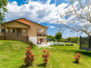 Einfamilienhaus "Marina (LBN411)", auf 2 Stockwerken, Baujahr 2018. Im Ortsteil Vinež, 1 km vom Zentrum von Labin, 6 km vom Zentrum von Rabac, in einem Wohnquartier, 6 km vom Meer. Zur Alleinbenutzung: Grundstück 3 000 m2 mit Rasen und Bäumen, Schwimmbad (8 x 4 m, 135 cm tief, saisonale Verfügbarkeit: 01.Mai. - 01.Okt.) mit Innentreppe. Aussendusche, Terrasse, Gartenmöbel, Grill, Poolpflege durch den Besitzer/Gärtner.