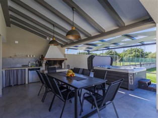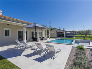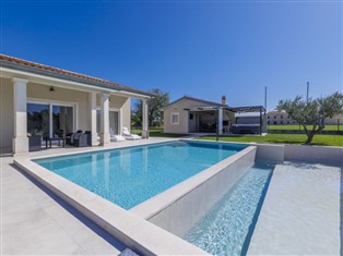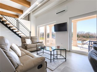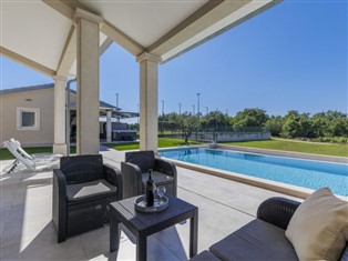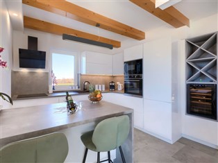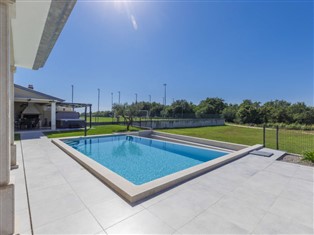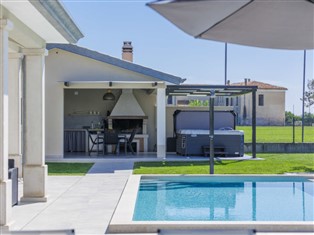 Schönes Einfamilienhaus "Villa Civitan", auf 2 Stockwerken, Baujahr 2022. Im Weiler Špinotija, 1 km vom Zentrum von Nova Vas, 3 km vom Zentrum von Brtonigla, 8 km vom Zentrum von Novigrad, ruhige, sonnige Lage, 8 km vom Meer. Zur Alleinbenutzung: Grundstück 1 050 m2 (eingezäunt), Garten mit Pflanzen, Schwimmbad eckig, beheizt (8 x 5 m, 150 cm tief, saisonale Verfügbarkeit: 01.Jan. - 31.Dez.) mit Innentreppe. Aussendusche, Grill. Im Hause: Internetzugang, Waschmaschine. Zufahrt bis zum Haus (100 m Naturweg). Parkplatz (für 3 Autos) beim Haus auf dem Grundstück. Einkaufsgeschäft 1 km, Supermarkt 8 km, Restaurant 2.5 km, Kieselstrand 8 km, Felsstrand 8 km. Wanderwege ab Haus 500 m, Radweg 550 m. Nahe gelegene Sehenswürdigkeiten: Aquapark 2 km. Der Besitzer akzeptiert keine Jugendgruppen. Schwimmbad beheizt (extra). Es ist notwendig 7 Tage im Voraus bekannt zu geben, ob die Schwimmbadheizung eingeschaltet werden soll. Videoüberwachung der Einfahrt und des Parkplatzes.
