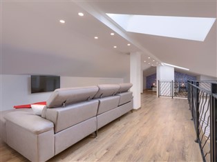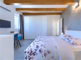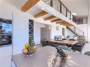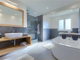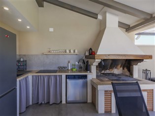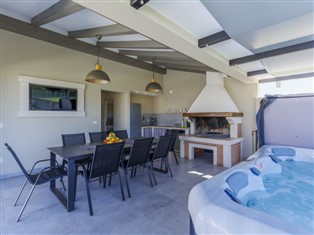 4-Zimmer-Haus 190 m² auf 2 Stockwerken. Komfortabel eingerichtet: Wohn-/Esszimmer mit Sat-TV (Flachbildschirm), Klimaanlage. Ausgang zur Terrasse. 2 Zimmer, jedes Zimmer mit 1 franz. Bett (180 cm, Länge 200 cm), Dusche/WC und Sat-TV (Flachbildschirm), Klimaanlage. 1 Zimmer mit 1 franz. Bett (180 cm, Länge 200 cm), Dusche/WC und Sat-TV (Flachbildschirm), Klimaanlage. Ausgang zum Schwimmbad. Offene Küche (Backofen, Geschirrspüler, 4 Glaskeramikherd Platten, Wasserkocher, Tiefkühler, elektrische Kaffeemaschine). Sep. WC, Bad/Dusche/WC, Whirlbadewanne. Dachgeschoss: abgeschrägte, offene Galerie, Deckenhöhe 120 - 200 cm mit Dachfenster mit 1 franz. Bett (180 cm, Länge 200 cm), Sat-TV (Flachbildschirm), Klimaanlage. Warmluftheizung. Terrasse 20 m², überdacht. Terrassenmöbel, Liegestühle. Eingeschränkte Fernsicht auf das Meer. Zur Verfügung: Babybett. Internet (Wireless LAN, gratis).