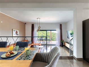 Schönes Einfamilienhaus "Villa Bella", auf 2 Stockwerken. Im Weiler Srbani, 4 km vom Zentrum von Brtonigla, 9 km vom Zentrum von Novigrad, ruhige, sonnige Lage, 9 km vom Meer, in einer Sackgasse. Zur Alleinbenutzung: Grundstück 500 m2, Schwimmbad eckig (8 x 4 m, 140 cm tief, saisonale Verfügbarkeit: 01.Mai. - 01.Nov.) mit Innentreppe. Aussendusche, Gartenmöbel, Grill. Im Hause: Internetzugang, Waschmaschine. Parkplatz (für 2 Autos) beim Haus auf dem Grundstück. Einkaufsgeschäft 3 km, Restaurant 3 km, Kieselstrand 9 km, Felsstrand 9 km. Wanderwege ab Haus 100 m, Radweg 150 m. Nahe gelegene Sehenswürdigkeiten: aquapark 3 km. Bitte beachten: geeignet für Familien. Der Besitzer akzeptiert keine Jugendgruppen. Das veranstalten von Feiern ist nicht gestattet. Das Objekt setzt sich aus 2 Doppelhäusern zusammen, kann auch zusammen gemietet werden.
