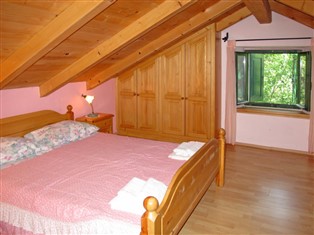 3-Zimmer-Haus 68 m² auf 2 Stockwerken. Wohn-/Esszimmer mit offenem Kamin (nur Deko), Sat-TV. 1 Zimmer mit 1 franz. Bett. Offene Küche (2 Kochplatten, 2 Flammen, Toaster, Mikrowelle, elektrische Kaffeemaschine). Dusche/WC. Dachgeschoss: (steile Treppe) 1 abgeschrägtes, offenes Zimmer mit 1 Diwanbett und 1 franz. Bett. Liegestühle. Zur Verfügung: Babybett (extra). Internet (Wireless LAN, gratis). Bitte beachten: Nichtraucher-Haus. Maximal 1 Haustier/Hund erlaubt. Niedrig platzierte Fenster im Schlafzimmer mit schrägen Decken.
