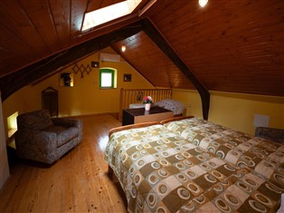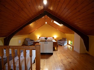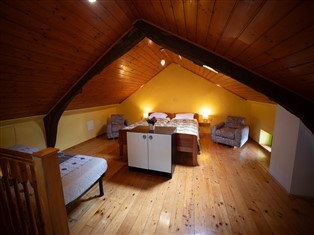 In der 1. Etage: (Schlafzimmer (Einzelklappbett , Doppelbett oder 2 Einzelbetten), Badezimmer (Dusche, Waschbecken, Toilette))