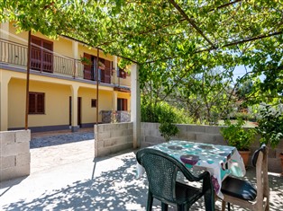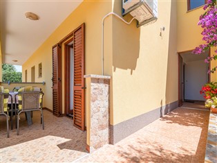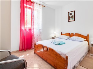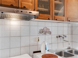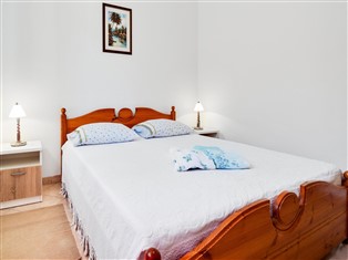 Ferienwohnung (In einem Wohngebiet oder im Zentrum (Dorf)) , 60 m² Wohnfläche, 2 Schlafzimmer, 1 Badezimmer, für 4 Personen. Parterre: (Küche (Kochplatte, Wasserkocher, Dunstabzugshaube, Kaffeemaschine, Backofen, Kühlschrank), Wohn/Esszimmer (Doppelschlafcouch, TV, Sitzecke, Klimaanlage), Schlafzimmer (Doppelbett), Schlafzimmer (Doppelbett), Badezimmer (Dusche, Waschbecken, Toilette, Bidet), Terrasse)