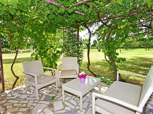 "Mirta (KST148)", 3-Zimmer-Wohnung 80 m², im Erdgeschoss. Vollständig renoviert im Jahre 2021: Wohn-/Esszimmer mit 1 Doppeldiwanbett und Sat-TV. Ausgang zur Terrasse. Eingang mit Klimaanlage. 2 Zimmer, jedes Zimmer mit 1 Doppelbett. Offene Küche (Backofen, Geschirrspüler, 4 Glaskeramikherd Platten, Toaster, Wasserkocher, Mikrowelle, Tiefkühler, elektrische Kaffeemaschine). Dusche/WC, Dusche/Bidet/WC. Ölheizung (extra), Klimaanlage (extra). Terrasse 18 m², überdacht, Gartensitzplatz. Terrassenmöbel. Zur Verfügung: Waschmaschine, Bügeleisen. Internet (Wireless LAN, gratis). Bitte beachten: Nichtraucher-Haus. Eigener Eingang.