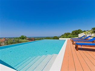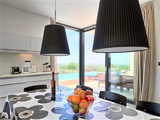 4-Zimmer-Villa 240 m² auf 2 Stockwerken. Wohn-/Esszimmer mit Sat-TV (Flachbildschirm), Klimaanlage. Ausgang zur Terrasse, zum Schwimmbad. Offene Küche (Backofen, Geschirrspüler, 4 Glaskeramikherd Platten, Mikrowelle, Tiefkühler) mit Klimaanlage. Sep. WC. Bodenheizung. Obergeschoss: offenes Durchgangszimmer mit 1 Doppeldiwanbett und Sat-TV (Flachbildschirm), Klimaanlage. 1 Zimmer mit 1 franz. Bett (180 cm, Länge 200 cm), Bad/WC und Klimaanlage. 1 Zimmer mit 2 Betten (90 cm, Länge 200 cm), Klimaanlage. 1 Zimmer mit 1 franz. Bett (160 cm, Länge 200 cm). Dusche/WC. Bodenheizung. Terrasse 15 m², überdacht. Terrassenmöbel, Liegestühle. Panoramasicht auf das Meer und die Landschaft. Zur Verfügung: Safe, Kinderhochstuhl, Babybett. Internet (Wireless LAN, gratis).