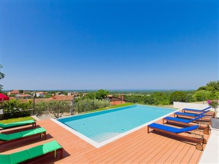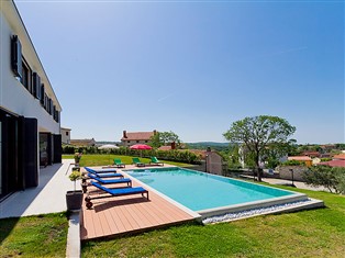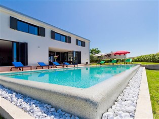 Višnjan 10 km von Porec: Moderne, schöne Villa "Anna", auf 2 Stockwerken. 300 m vom Zentrum von Višnjan, ruhige, sonnige, erhöhte Lage, 11 km vom Meer. Zur Alleinbenutzung: Grundstück 1 150 m2 (eingezäunt), schöner Garten mit Rasen und Pflanzen, Schwimmbad eckig (5 x 10 m, 125 - 145 cm tief, saisonale Verfügbarkeit: 15.Mai. - 01.Okt.) mit Innentreppe. Tischtennis, Pergola, Grill. Im Hause: Internetzugang, Tischfussball, Waschmaschine. Parkplatz beim Haus auf dem Grundstück. Einkaufsgeschäft 200 m, Restaurant 400 m, Kieselstrand 11 km. Tennis 10 km, Wanderwege ab Haus, Radweg 100 m. Der Besitzer akzeptiert keine Jugendgruppen.