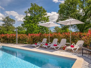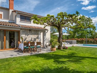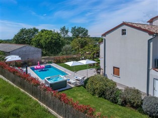 Sv. Lovrec 12 km von Porec: Schönes Doppelhaus "Villa Marina", auf 2 Stockwerken, renoviert im Jahre 2018. Im Weiler Vošteni, 2 km vom Zentrum von Sv. Lovrec, ruhige, sonnige Lage, 7 km vom Meer. Zur Alleinbenutzung: Grundstück 700 m2 (eingezäunt), Garten mit Rasen und Pflanzen, Schwimmbad eckig (8 x 4 m, 140 cm tief, saisonale Verfügbarkeit: 01.Mai. - 01.Okt.) mit Innentreppe. Aussendusche, Sprudelbad, Terrasse (30 m2), Gartenmöbel, Grill. Im Hause: Internetzugang, Waschmaschine. Parkplatz (für 3 Autos) beim Haus auf dem Grundstück. Einkaufsgeschäft 2 km, Supermarkt 12 km, Restaurant 150 m, Kieselstrand 12 km, Felsstrand 12 km. Wanderwege ab Haus 50 m, Radweg 100 m. Nahe gelegene Sehenswürdigkeiten: adventure park 3 km, Lim valley 7 km, aquapark 17 km, amusement park 17 km. Es ist möglich autochthone Lebensmittel zu kaufen (auf Anfrage, extra).