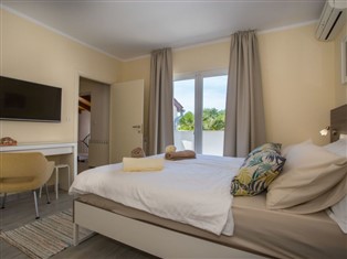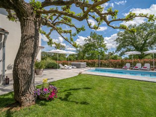 4-Zimmer-Doppelhaushälfte 120 m² auf 2 Stockwerken. Vollständig renoviert im Jahre 2018, komfortabel und geschmackvoll eingerichtet: Wohnzimmer 25 m² mit offenem Kamin und Sat-TV (Flachbildschirm), Klimaanlage. Ausgang zur Terrasse. Esszimmer 25 m². Offene Küche (Backofen, Geschirrspüler, 4 Glaskeramikherd Platten, Mikrowelle, Tiefkühler, elektrische Kaffeemaschine). Sep. WC. Obergeschoss: 1 Zimmer mit 1 franz. Bett (160 cm, Länge 200 cm), Dusche/Bidet/WC, Doppelwaschbecken und Sat-TV (Flachbildschirm), Klimaanlage. Ausgang zum Balkon, zur Terrasse. 1 Zimmer mit 1 franz. Bett (160 cm, Länge 200 cm), Sat-TV (Flachbildschirm), Klimaanlage. 1 Zimmer mit 2 Betten (90 cm, Länge 200 cm), Sat-TV (Flachbildschirm), Klimaanlage. Dusche/WC. Balkon 5 m², Terrasse 6 m². Terrassenmöbel, Liegestühle. Sicht auf das Schwimmbad und den Garten. Zur Verfügung: Safe, Kinderhochstuhl, Babybett, Haartrockner. Internet (Wireless LAN, gratis).