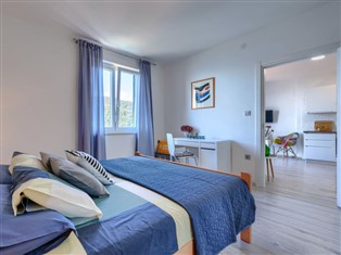 "Boris (RAC160)", 3-Zimmer-Wohnung 45 m² im 1. Stock. Objekt geeignet für 4 Erwachsene. Zweckmässig eingerichtet: 1 Zimmer mit 1 franz. Bett. 1 Zimmer mit 2 Betten. Wohnküche (Backofen, Geschirrspüler, 2 Glaskeramikherd Platten, Mikrowelle, Tiefkühler, elektrische Kaffeemaschine) mit Esstisch und Sat-TV. Ausgang zum Balkon. Dusche/WC. E-Heizung, Klimaanlage. Balkon 5 m². Balkonmöbel. Sicht auf das Meer. Zur Verfügung: Waschmaschine. Internet (Wireless LAN, gratis). Bitte beachten: Nichtraucher-Unterkunft. Eigener Eingang.