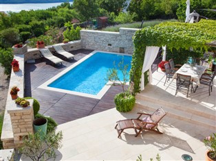 Schöne, rustikale Villa "Gelci", auf 2 Stockwerken, aus dem 18. Jahrhundert. Ausserhalb des Ortes, 1.1 km vom Zentrum, ruhige, sonnige, erhöhte Lage, 900 m vom Meer, 900 m vom Strand, in einer Sackgasse. Zur Alleinbenutzung: Grundstück 1 400 m2 (eingezäunt) mit Rasen, Schwimmbad eckig, beheizt (24 m2, 110 - 140 cm tief, saisonale Verfügbarkeit: 01.Jan. - 31.Dez.) mit Innentreppe. Terrasse (40 m2), Gartenmöbel, Grill, Kinderspielplatz (Rutschbahn, Schaukel, Sandkasten). Im Hause: Internetzugang, Zentralheizung, Waschmaschine. Parkplatz (für 3 Autos) beim Haus auf dem Grundstück. Einkaufsgeschäft 1.1 km, Restaurant 1 km, Kieselstrand 900 m. Bitte beachten: private Bootsanlegestelle. Es ist notwendig 7 Tage im Voraus bekannt zu geben, ob die Schwimmbadheizung eingeschaltet werden soll. 2 Leihfahrräder zur Verfügung (im Preis inbegriffen, auf Anfrage).