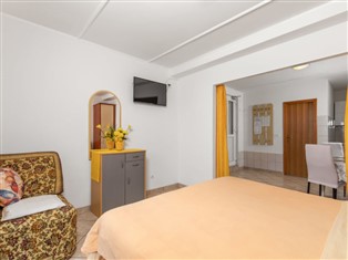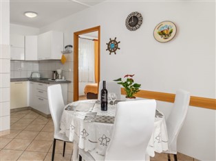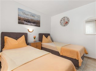 "Brzic (CKV105)", 2-Zimmer-Wohnung 43 m², im Erdgeschoss. Wohn-/Schlafzimmer mit 1 franz. Bett (160 cm, Länge 200 cm), Esstisch, Sat-TV und Klimaanlage. Ausgang zum Balkon. 1 Zimmer mit 2 Betten (90 cm, Länge 200 cm). Offene Küche (2 Kochplatten, Geschirrspüler, Toaster, Wasserkocher, elektrische Kaffeemaschine). Dusche/WC. Klimaanlage, Warmluftheizung (extra). Balkon. Balkonmöbel. Zur Verfügung: Internet (Wireless LAN, gratis). Bitte beachten: Nichtraucher-Haus.