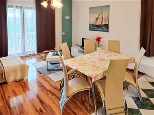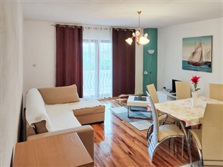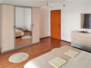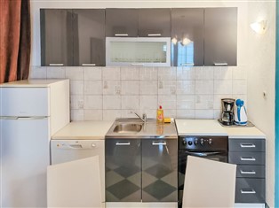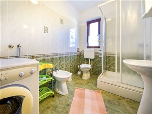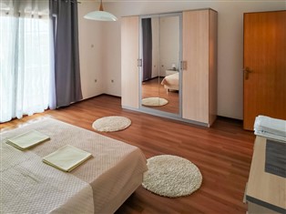 3-Zimmer-Wohnung 85 m² im 1. Stock, Südwestlage. Wohn-/Esszimmer 30 m² mit 1 Doppeldiwanbett (140 cm, Länge 200 cm), Sat-TV (Flachbildschirm). Ausgang zur Terrasse. Eingang mit Klimaanlage. 1 Zimmer mit 1 Doppelbett (2 x 90 cm, Länge 200 cm). Ausgang zur Terrasse. 1 Zimmer mit 2 Betten (90 cm, Länge 190 cm). Offene Küche (4 Kochplatten, Backofen, Geschirrspüler, Tiefkühler, elektrische Kaffeemaschine). Dusche/Bidet/WC. Klimaanlage (extra). Keine Heizmöglichkeit. Terrasse 16 m², überdacht. Terrassenmöbel. Sicht auf das Meer. Zur Verfügung: Waschmaschine. Internet (Wireless LAN, gratis).