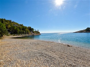 Ribarica 5 km von Karlobag: Mehrfamilienhaus "Beba". 80 m vom Meer, 80 m vom Strand, an einer Hauptstrasse. Zur Mitbenutzung: Grundstück 300 m2 (eingezäunt). Grill. Im Hause: Internetzugang. Parkplatz beim Haus auf dem Grundstück. Einkaufsgeschäft, Restaurant 250 m, Kieselstrand 80 m.