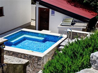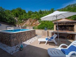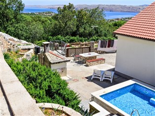 Cesarica 5 km von Karlobag: Dreifamilienhaus "Sanja". Alleinstehende, sonnige, erhöhte Lage, 800 m vom Meer, 800 m vom Strand. Zur Mitbenutzung: Grundstück 500 m2 (eingezäunt), Schwimmbad (3 x 3 m, 90 cm tief, saisonale Verfügbarkeit: 01.Mai. - 16.Sep.). Aussendusche, Pergola (10 m2), Gartenmöbel, Grill. Im Hause: Internetzugang, Wireless LAN. Parkplatz beim Haus auf dem Grundstück. Einkaufsgeschäft 6 km, Restaurant 5 km, Kieselstrand, Felsstrand, betonierter Strand 800 m. Schwimmbad mit Hydromassage.