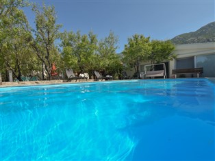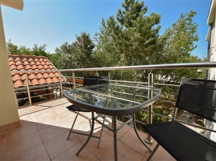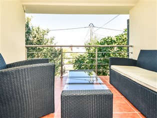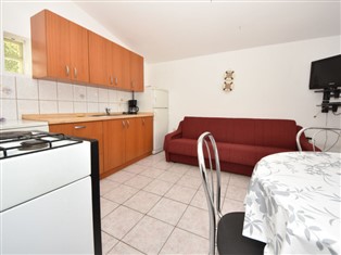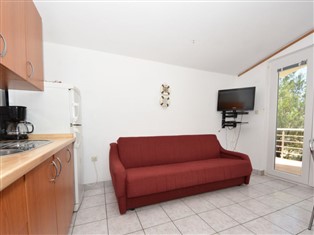 2-Zimmer-Wohnung 35 m² im 1. Stock. Wohn-/Esszimmer mit 1 Diwanbett (180 cm, Länge 190 cm), Sat-TV (Flachbildschirm). 1 Zimmer mit 1 franz. Bett (160 cm, Länge 200 cm), Klimaanlage. Ausgang zum Balkon. Offene Küche (4 Kochplatten, Backofen, Geschirrspüler, Tiefkühler, elektrische Kaffeemaschine). Dusche/WC. Balkon 6 m², Terrasse 5 m² teilweise überdacht. Terrassenmöbel. Zur Verfügung: Internet (Wireless LAN).