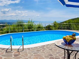 Rukavac 5 km von Opatija: Einfamilienhaus "Lea", auf 2 Stockwerken. 3.5 km vom Zentrum von Matulji, ruhige, sonnige Lage am Hang, 5 km vom Meer, im Grünen. Zur Alleinbenutzung: Grundstück 1 400 m2 (eingezäunt), Rasen 500 m2, Schwimmbad (32 m2, 150 cm tief, saisonale Verfügbarkeit: 01.Mai. - 15.Okt.). Dusche/WC im Poolbereich, Tischtennis, Badminton, Laube (30 m2), Pergola (45 m2), Gartenmöbel, Grill, Kinderspielplatz (Schaukel). Im Hause: Internetzugang, Waschmaschine. Parkplatz (für 2 Autos) beim Haus auf dem Grundstück. Einkaufsgeschäft 650 m, Supermarkt 4.5 km, Restaurant 900 m, Felsstrand 5 km, Strandbad 5 km, betonierter Strand 5 km. Wanderwege ab Haus 5 km. Der Besitzer akzeptiert keine Jugendgruppen.