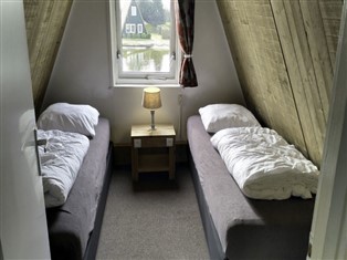 "Vissershuis", 4-Zimmer-Haus 60 m². Abgeschrägt, einfach eingerichtet: offenes Wohn-/Esszimmer mit Esstisch, TV, Radio und CD. Ausgang zum Garten. 1 Doppelzimmer mit 2 Betten. Kleine, offene Küche (4 Kochplatten, Mikrowelle, elektrische Kaffeemaschine). Dusche/WC. Heizung. Obergeschoss: (steile Treppe) 2 Doppelzimmer, jedes Zimmer mit 2 Betten. Terrassenmöbel. Sicht auf den See. Zur Verfügung: Internet (Wireless LAN, gratis). Bitte beachten: 2 Haustiere/Hunde erlaubt. Rauchmelder.