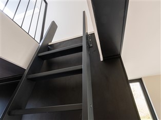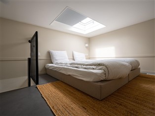 In der 1. Etage (über steile Treppe): (Empore (über steile Treppe) (Doppelbett oder 2 Einzelbetten))