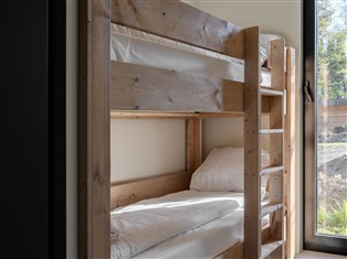 Diese Wasser-Lodge verfügt über zwei Schlafzimmer, eines davon mit einem Etagenbett. Ideal für die ganze Familie.