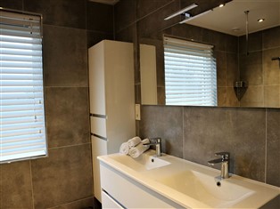 Ferienwohnung (Ländlich) , 160 m² Wohnfläche, 4 Schlafzimmer, 1 Badezimmer, für 8 Personen. Parterre: (Eingang (Kühlschrank, Tiefkühlschrank), Diele (Trockner, Waschmaschine), offene Küche (Wasserkocher, Kochherd (Induktion), Kaffeemaschine (pads), Backofen, Kombi-Mikrowelle, Spülmaschine, Kühlschrank), Wohn/Esszimmer (TV (smart TV), Esstisch, Sitzecke, streamingservice), Badezimmer (Dusche, Waschbecken, Waschbecken), Toilette)