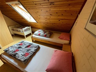 Eine Unterkunft mit typisch 70 Jahre Anordnung, Sanitär nüchtern, aber gut ausgestattete Küche. Wir waren mit 16 Personen, die gerade alle zusammen am großen Tisch passen. In Bezug auf die Schlafgelegenheit war ein wenig fit und messen. Drei Generationen haben einen schönen Mitte der Woche im Herbst Pracht genossen. Die Gegend ist ländlich, wunderbar Radfahren und Wandern. Mehr als genügend Spiel für die Enkel (zwischen 9 und 4 Jahre alt) auf dem Hof