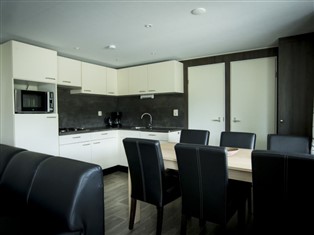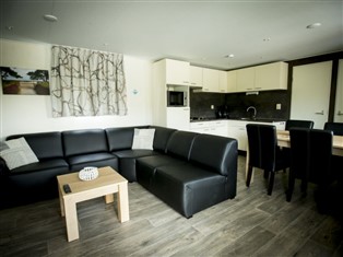 "Duinlodge", 4-Zimmer-Chalet 43 m². Komfortabel eingerichtet: mit sep. WC. Offenes Wohn-/Esszimmer mit TV. Ausgang zur Terrasse. 1 Doppelzimmer mit 1 x 2 Etagenbetten (80 cm, Länge 200 cm). 2 Doppelzimmer, jedes Zimmer mit 2 Betten (80 cm, Länge 200 cm). Offene Küche (4 Kochplatten, Geschirrspüler, Wasserkocher, elektrische Kaffeemaschine, Kombinationsmikrowelle). Dusche. Heizung. Terrassenmöbel. Zur Verfügung: Internet (Wireless LAN, gratis). Parkplatz (1 Auto) beim Haus. Bitte beachten: Nichtraucher-Haus. Rauchmelder.