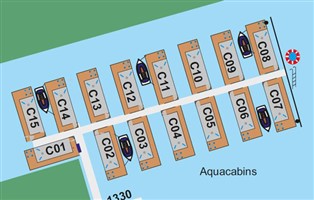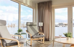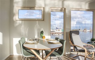 Hausboot, 52 m² Wohnfläche, 2 Schlafzimmer, 1 Badezimmer, für 4 Personen. Isolierung: Winterfest, Heizung: Elektro-Heizung, Aussicht: Panoramaaussicht auf Gewässer, Platzierung, Aussicht: Hafenmole