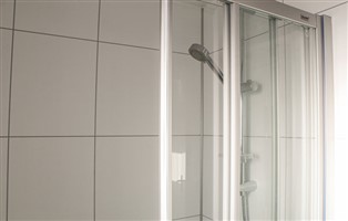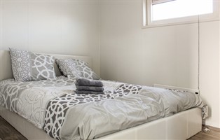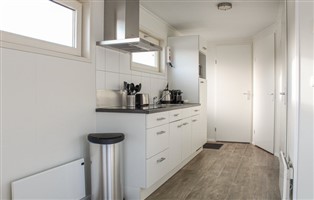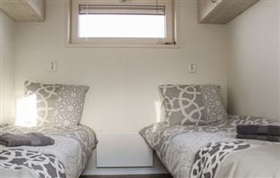 Das Wohnzimmer ist sehr modern und hell eingerichtet. Durch die großen Fenster an allen Seiten des Wohnzimmers können Sie die Wasserlandschaft aus allen Blickwinkeln bewundern. Die offene Küche ist komplett ausgestattet. Es gibt zwei Schlafzimmer; eines mit einem Doppelbett und eines mit zwei Einzelbetten. Das Badezimmer hat eine Toilette, ein Waschbecken und eine Dusche.