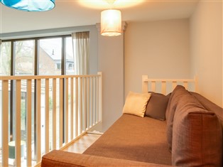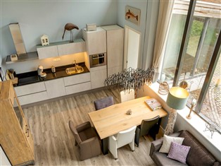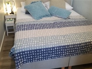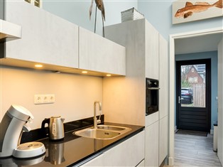 Ferienhaus (In einem Wohngebiet oder im Zentrum (Dorf)) , 90 m² Wohnfläche, 2 Schlafzimmer, 1 Badezimmer, für 4 Personen. Parterre: (offene Küche (Herd, Wasserkocher, Kaffeemaschine (pads), Backofen, Mikrowelle, Spülmaschine, Kühlschrank, Tiefkühlschrank), Wohn/Esszimmer (Fußbodenheizung) (TV, Esstisch, Dekokamin, Sitzecke, Gartentüren, Heizung (Fußbodenheizung)), Schlafzimmer (14 m2) (Doppelbett), Schlafzimmer (14 m2) (Doppelbett), Badezimmer (Dusche (ebenerdige Dusche), Toilette), Empore (Doppelschlafcouch), Fahrräder verfügbar)