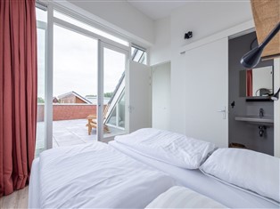 Die Ferienhäuser wurden mit viel Liebe zum Detail und viel Atmosphäre eingerichtet. Die großen Fenster ermöglichen es, die schöne Umgebung vom Wohnzimmer und der offenen Küche aus optimal zu genießen. Im Erdgeschoss sind zudem zwei Schlafzimmer und ein Badezimmer vorhanden. Im Obergeschoss finden Sie das Hauptschlafzimmer mit eigenem Bad. Dieses Schlafzimmer bietet auch Zugang zur gemeinsamen Dachterrasse.