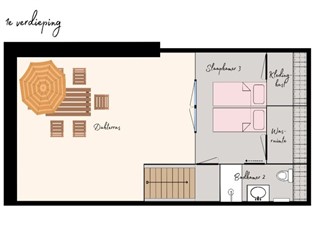 Ferienwohnung (Auf Ferienpark) , 3 Schlafzimmer, 2 Badezimmer, für 6 Personen. Parterre: (Eingangshalle (Toilette), Wohnzimmer (TV (smart TV)), offene Küche (Wasserkocher, Kaffeemaschine (cups), Kombi-Mikrowelle, Spülmaschine, Kühlschrank (+ Gefrierfach)), Schlafzimmer (Einzelbett (90 x 200 cm), Einzelbett (90 x 200 cm)), Schlafzimmer (Einzelbett (70 x 200 cm), Einzelbett (70 x 200 cm)), Badezimmer (Dusche, Waschbecken))