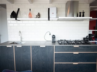 Das Erdgeschoss umfasst einen hellen Wohnbereich mit Sitzecke, Smart-TV und Essbereich. Die offene Küche ist komplett ausgestattet mit Geschirrspüler, Kombi-Mikrowelle, Nespresso-Maschine und Quooker (mit kochendem und sprudelndem Wasser). Ein separates WC ist ebenfalls vorhanden.