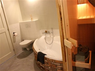 Ferienwohnung (Auf einem Bauernhof, Ländlich) , 145 m² Wohnfläche, 3 Schlafzimmer, 2 Badezimmer, für 6 Personen. Parterre: (Eingangshalle, Wohnzimmer (TV, Sitzecke, kabelloses Musiksystem, Stereoanlage), Küche (Esstisch, Kochplatte, Wasserkocher, Kochherd (4 Kochplatten, Induktion), Kaffeemaschine (Filter), Kombi-Mikrowelle, Spülmaschine, Kühl-/Gefrierkombination), Schlafzimmer (Doppelbett), Badezimmer (Badewanne, Dusche, Waschbecken, Toilette), Toilette (Waschbecken), Sauna)