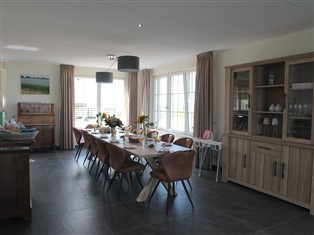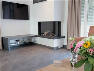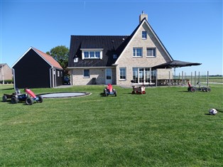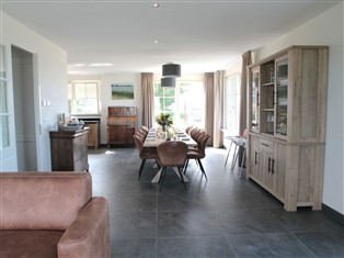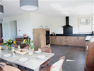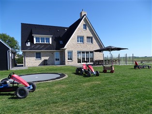Ferienwohnung, 260 m² Wohnfläche, 5 Schlafzimmer, 2 Badezimmer, für 10 Personen. Parterre: (Eingangshalle (Toilette), offene Küche (Wasserkocher, Kochherd (Induktion), Kaffeemaschine (Filter), Backofen, Mikrowelle, Spülmaschine, Kühlschrank), Wohn/Esszimmer (TV (Flatscreen), Esstisch (12 Personen), Sitzecke, Heizung (Fußbodenheizung), 2x Hochstuhl, Gasofen), Schlafzimmer mit Badezimmer (Doppelbett, Dusche, 2x Waschbecken, Kinderbett, Föhn), Wirtschaftsraum (Tiefkühlschrank, Trockner, Waschmaschine), Gartentüren, Terrasse, Garten, Fahrradabstellraum, Gartenmöbel, Grill, Parkplatz, Sonnenschirm, Fußballtor)