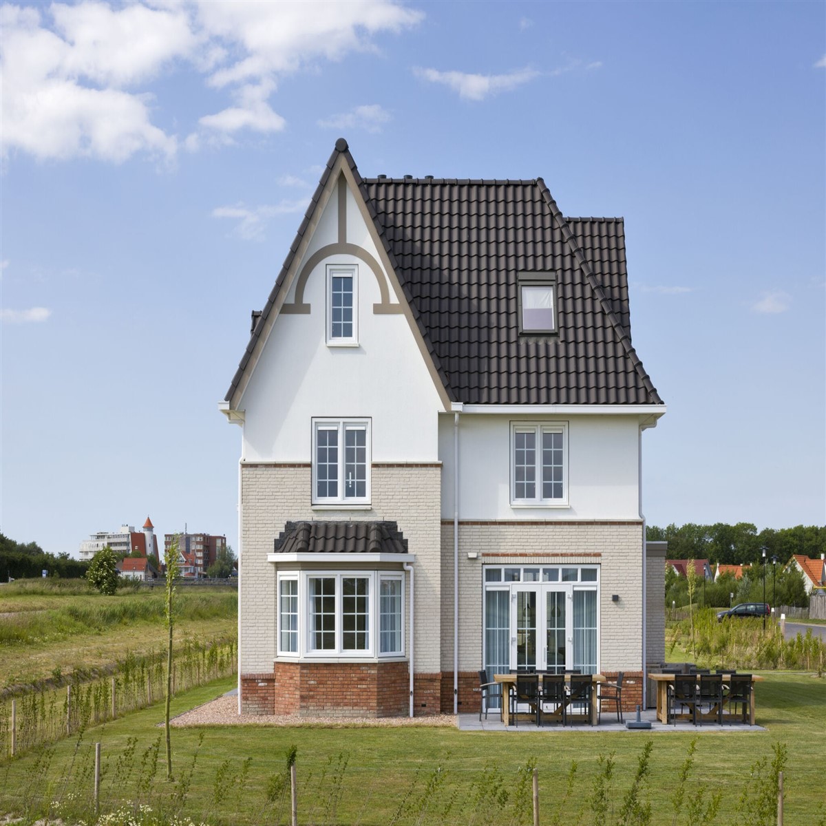 Schöne Unterkunft. Suchen, um es zu finden. Fahren Sie durch den Roompot Park.