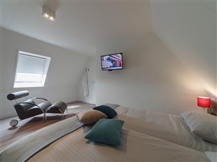 Ferienhaus, 122 m² Wohnfläche, 3 Schlafzimmer, 2 Badezimmer, für 6 Personen. Parterre: (offene Küche (Wasserkocher, Kaffeemaschine (cups), Backofen, Mikrowelle, Spülmaschine), Wohn/Esszimmer (TV (Flatscreen), Esstisch (6 Personen), Dekokamin, Sitzecke, DVD-Spieler, Stereoanlage), Schlafzimmer (2x Einzelbett (90 x 210 cm), TV), Badezimmer (Whirlwanne, Dusche, Waschbecken, Toilette, Föhn), Toilette)