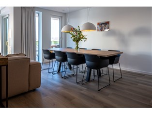 Neu in der Vermietung der Luxus-Loft-Apartments in der Résidence Marina Kamperland! Luxus und Komfort stehen in diesen geschmackvollen und modernen Loftwohnungen an erster Stelle. Die Kombination der Lage am Jachthafen, dem Veerse Meer und dem Nordseestrand machen diese Apartments einzigartig. Der lebhafte Yachthafen und die kulinarische Oase Brasserie Blush, die sich innerhalb der Anlage befindet, stellen die perfekte Basis für einen luxuriösen Urlaub in Zeeland dar. Dieses Apartment befindet sich im ersten Stock und ist für 6 Personen ausgestattet. Der Eingang bietet Zugang zu drei geräumigen Schlafzimmern mit jeweils zwei Einzelbetten. Bei Ihrer Ankunft sorgen wir dafür, dass die Betten frisch für Sie bezogen sind. Es gibt zwei moderne Badezimmer in der Wohnung. Ein Badezimmer hat eine begehbare Dusche, WC und Waschbecken. Das zweite Badezimmer hat eine ebenerdige Dusche und ein Waschbecken. Zusätzlich gibt es ein separates Gäste-WC. Das geräumige und ansprechend eingerichtete Wohnzimmer verfügt über eine gemütliche Sitzecke und einen Smart-TV mit ausländischen Sendern. Vom Wohnzimmer aus haben Sie auch Zugang zur großzügigen Südterrasse mit luxuriösen, bequemen Gartenmöbeln, wo Sie bis in die späten Stunden die schöne Aussicht auf den lebhaften Jachthafen und das Veerse Meer genießen können. Die geräumige, luxuriös ausgestattete Küche ist mit komfortablen Einbaugeräten ausgestattet, darunter ein Induktionskochfeld, ein Backofen/Grill, ein Kühlschrank mit Gefrierfach und eine Nespresso-Kaffeemaschine. Es gibt auch einen separaten Raum mit Waschmaschine und Trockner. Im Innenabstellraum finden Ihre (Elektro-)Fahrräder Platz. Haustiere sind in dieser Wohnung nicht erlaubt. Ein Kinderbett und ein Hochstuhl sind standardmäßig vorhanden.