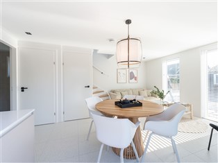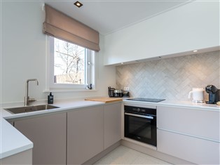 Ferienhaus (Ländlich) , 70 m² Wohnfläche, 2 Schlafzimmer, 1 Badezimmer, für 4 Personen. Parterre: (Wohnzimmer (TV, Esstisch, Sitzecke), offene Küche (Wasserkocher, Kochherd, Dunstabzugshaube, Kaffeemaschine, Backofen, Spülmaschine, Kühlschrank), Badezimmer (Dusche, Waschbecken), Toilette (Toilette))