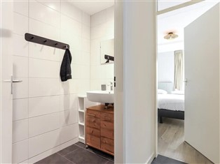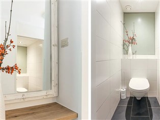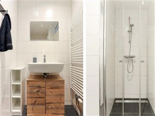 Ferienwohnung (In einem Wohngebiet oder im Zentrum (Stadt)) , 55 m² Wohnfläche, 2 Schlafzimmer, 1 Badezimmer, für 4 Personen. Parterre: (Küche (Kaffeemaschine, Backofen, Kühlschrank, elektrische Kochplatten), Wohn/Esszimmer (Esstisch, Sitzecke), Schlafzimmer (Doppelbett oder 2 Einzelbetten, Waschbecken), Schlafzimmer (Doppelbett oder 2 Einzelbetten), Badezimmer (Dusche, Waschbecken), Toilette (Toilette))