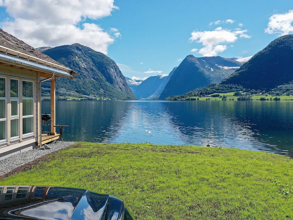 Eines von zwei attraktiven, modernen Ferienhäusern vor Ort, das unmittelbar am Seeufer steht und so fantastische Aussicht über das Wasser und zum gegenüberliegenden Gebirge bietet! Dieses Objekt mit der Hausnummer 06719 steht, von hinten und Richtung Ufer gesehen, links. Sie wohnen hier wirklich nur 5 Meter vom Seeufer des Jølstravatnet, Norwegens fischreichstem Forellensee! Es sind 4 km zur Ortschaft Skei und etwa 40 km zur Kleinstadt Førde am Fjord. Im Haus gibt es einen geräumigen Küchen-/Wohnbereich für das Familienleben, mit bodentiefer Fensterfront Richtung See. Zur technischen Ausstattung gehören auch WLAN mit 200 Mbit zum Streamen sowie TV mit Astra1 und somit auch deutschen Sendern zur Auswahl. Die Einzelbetten im Haus können auch als Doppelbett genutzt werden. Vor Ort gibt es diverses Angelzubehör zu mieten wie z.B. Angelruten oder Fischernetze. Außerdem gibt es ein mietbares Boot für Angelausflüge, das man ggf. im Voraus reservieren sollte. Es steht auch eine Filetierbank für Fisch zur Verfügung. Die Rasenfläche vor dem Haus sowie das kleine Strandufer gleich unterhalb bieten Platz für Spiel und Spaß der Kinder. Die reizvolle Umgebung stellt zudem eine Reihe von Ausflugszielen in Reichweite zur Auswahl, darunter Gletscher wie Supphellebreen oder das Gletscherzentrum in Fjærland, sowie die Fjorde von Olden, Stryn, Balestrand etc. Der Loen Skylift bringt Sie unten vom Fjordufer in Loen in kürzester Zeit hinauf auf den Berggipfel Hoven auf 1.100 m.ü.M. Außerdem findet man schöne Täler und Berge zum Wandern. In der Winterzeit liegen im Umkreis von nur etwa 30 km eine Alpinanlage und zudem die Skigebiete von Hodlekve in Sognsdalen, Vassenden oder Utvikfjellet (auch für Langläufer). Ab 01.04. bis 01.10. im Voraus mietbares Boot, zahlbar vor Ort am Ferienhaus: *1x 16 Fuß Boot mit 20 PS Motor, inklusive Schwimmwesten. Bei Anmietung des Bootes können Sie im Zeitraum 15.4. bis 15.9. zusätzlich 5 Forellennetze anmieten für NOK 200,-/Tag und nur gegen eine zusätzliche Kaution in Höhe von NOK 1.000,-. Verleih auch von Angelruten und Netzen. Hauseigene Filetierbank. SUP-Board zu mieten für NOK 300,-/Tag.