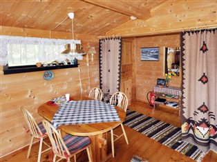 Wohnfläche 55 m². E-Herd 2 Platten, kleiner Backofen, Kühlschrank, Kaffeemaschine. TV. Dusche/WC. Elektroheizung, Kaminofen. Ferienhaus FJS 319 ca. 300 m entfernt.