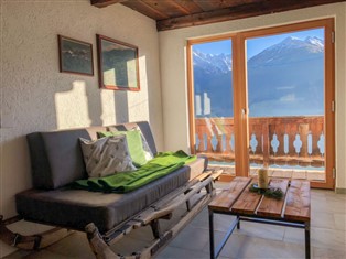 "Appartment Wiesberg", 3-Zimmer-Wohnung 90 m², unteres Geschoss. Geräumig und hell, schön und gemütlich eingerichtet: Eingang. Offenes Wohnzimmer mit Kabel-TV, Flachbildschirm und Kachelofen. Ausgang zum Balkon. 1 Doppelzimmer. 1 Zimmer mit 1 Bett, 1 Doppelbett, Kabel-TV, Flachbildschirm und Kachelofen. Grosse Küche (Geschirrspüler, 4 Glaskeramikherd Platten, Toaster, Wasserkocher, elektrische Kaffeemaschine) mit Esstisch. Dusche/WC, sep. WC. Fussbodenheizung. Holzdielenboden, Natursteinboden. Terrassenmöbel, Gartengrill (mobil). Herrliche Panoramasicht auf die Landschaft. Zur Verfügung: Kinderhochstuhl, Babybett bis 2 Jahre, Holz (gratis). Internet (Wireless LAN, gratis). Bitte beachten: Nichtraucher-Unterkunft. Rauchmelder, Feuerlöscher. Bei Belegung mit weniger Personen als der maximalen Personenzahl stehen nicht alle Wohneinheiten zur Verfügung. 50615-000328-2022