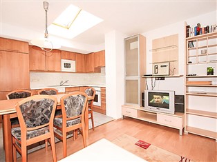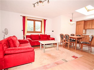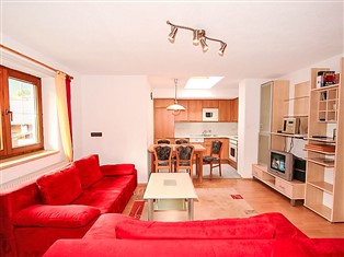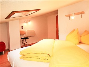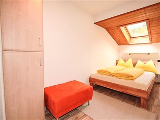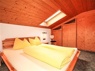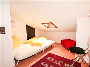 4-Zimmer-Wohnung 65 m², im Dachgeschoss. Abgeschrägt, geschmackvoll eingerichtet: Eingang. 1 Doppelzimmer. 1 kleines Zimmer mit 1 franz. Bett (140 cm). 1 kleines Zimmer mit 1 franz. Bett (160 cm). Grosses Wohnzimmer mit Sat-TV und Radio. Offene Küche (Backofen, Geschirrspüler, 4 Glaskeramikherd Platten, Mikrowelle) mit Esstisch. Bad/Dusche/WC. Abstellkammer. Sicht auf die Berge. Zur Verfügung: Internet (Wireless LAN, gratis). Bitte beachten: Nichtraucher-Unterkunft. Rauchmelder. Sehr niedrige Raumhöhe im Zimmer mit französischem Bett.